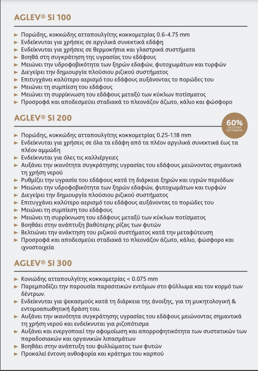 Το προϊόν AGLEV® SI 200 είναι πορώδης, κοκκώδης άργιλος για την ενίσχυση της απόδοσης του εδάφους και της τύρφης.