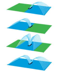 Εκτοξευτής τύπου βεντάλιας, με 14 τρύπες νερού τοποθετημένες με ακρίβεια προσφέρει ομοιόμορφη κατανομή και φυσική βροχόπτωση στην επιφάνεια που αρδεύεται. Ο μοχλός ελέγχου επιλέγει ανάμεσα σε 4 τύπους