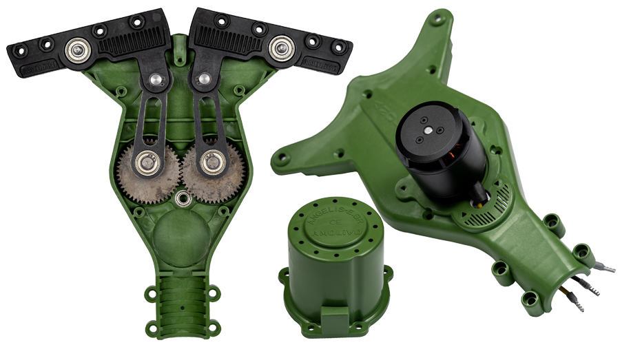 Το Amolivo είναι εξοπλισμένο με τελευταίας τεχνολογίας μοτέρ (τύπου brushless) και με ρυθμιστή στροφών έτσι ώστε να μπορείτε να προσαρμόσετε τις παλμικές δονήσεις του μηχανήματος ανάλογα με τις ανάγκες και τον τύπο της ελιάς.