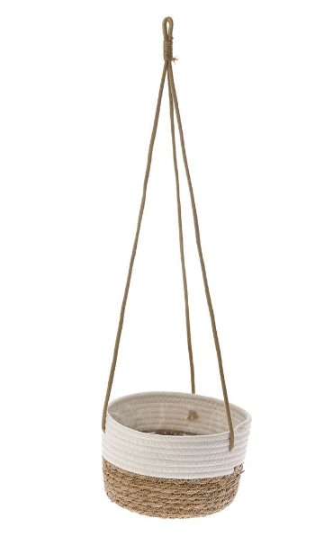 Κρεμαστό ψάθινο/βαμβακερό καλάθι Φ23