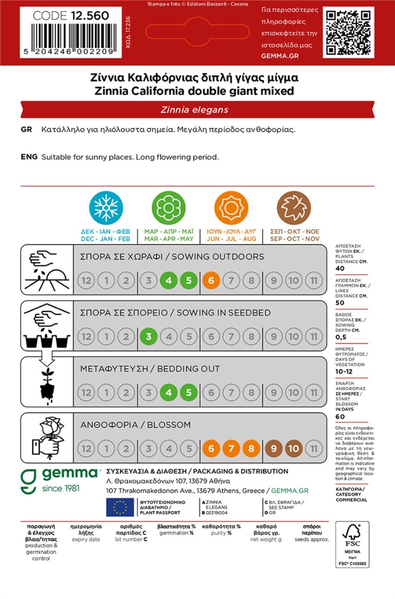 Ζίννια Καλιφόρνιας διπλή γίγας μίγμα 12560
